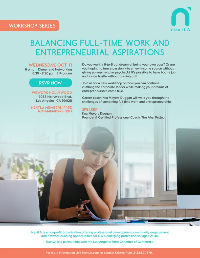NextLA: Balancing Full-Time Work and Entrepreneurial Aspirations Workshop Series October 11, 2017October 6, 2017 Robin Shank Loading Map.... WeWork Hollywood7083 Hollywood Blvd - Los AngelesEvents 34.1018292 -118.34438929999999 Date/Time Date(s) - 10/11/20176:00 pm - 8:30 pm Location WeWork Hollywood Categories Other Event