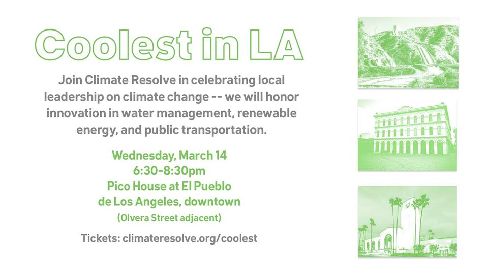 Join Climate Resolve in celebrating local leadership on climate change — we will honor innovation in water management, renewable energy, and public transportation.