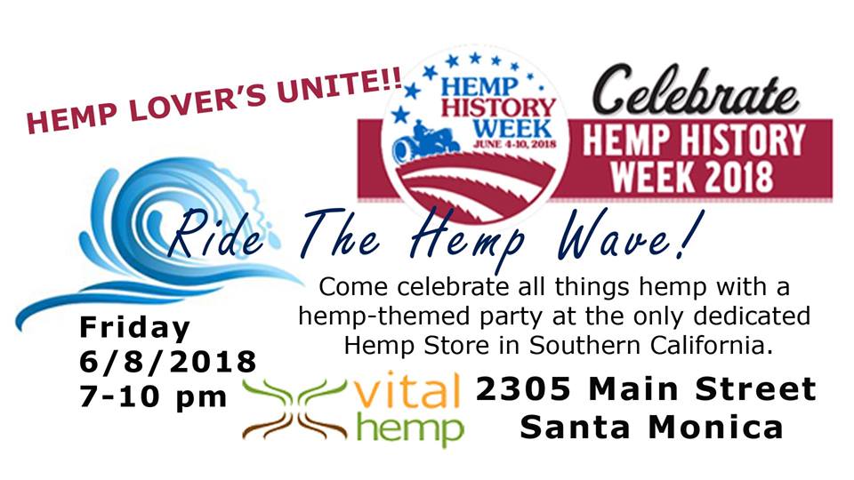 “Ride the Hemp Wave” Party June 8, 2018June 6, 2018 Robin Shank Loading Map.... Vital Hemp2305 Main St. - Santa MonicaEvents 34.004895 -118.48623250000003 Date/Time Date(s) - 06/08/20187:00 pm - 10:00 pm Location Vital Hemp Categories Partner Events https://www.facebook.com/events/242647823152801/