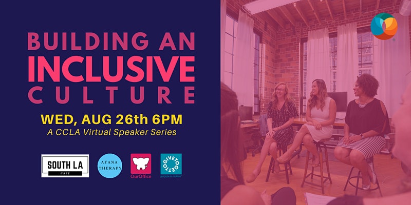 Please join CCLA and featured LA business leaders for the panel discussion “Building an Inclusive Culture” on Wednesday, August 26th. Panelists will share how they integrate inclusivity in their work, business shifts resulting from the pandemic, and thoughts on the road ahead. The panel will be followed by Q&A and discussion.