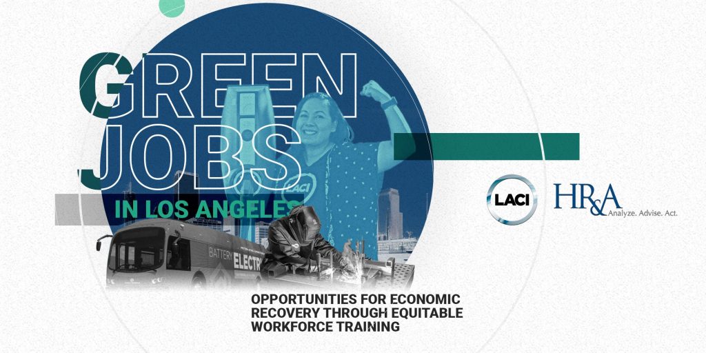This Green Jobs Report, commissioned by LACI, researched by HR&A Advisors, and funded by the California Workforce Development Board (CWDB) and the City of Los Angeles Workforce Development Board, offers an in-depth analysis of Green Jobs in Los Angeles County and lays forth a course of action to grow an inclusive green economy in Los Angeles and beyond.