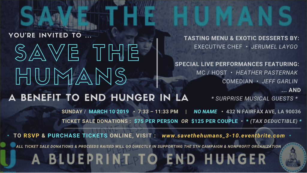 Save The Humans Benefit To End Hunger March 10, 2019March 8, 2019 Robin Shank Loading Map.... No Name432 North Fairfax Ave - Los AngelesEvents 34.0792059 -118.36122080000001 Date/Time Date(s) - 03/10/201912:00 am Location No Name Categories Other Event