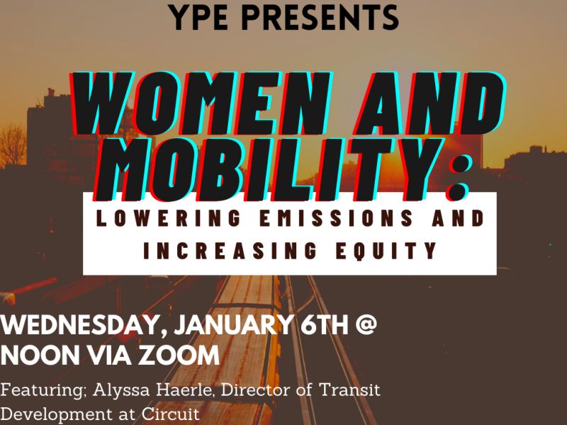 YPE Presents: Women and Mobility: Lowering Emissions and Increasing Equity January 6, 2021December 15, 2020 Robin Shank Map Unavailable Date/Time Date(s) - 01/06/202112:00 pm - 1:00 pm Categories Other Event RSVP HERE